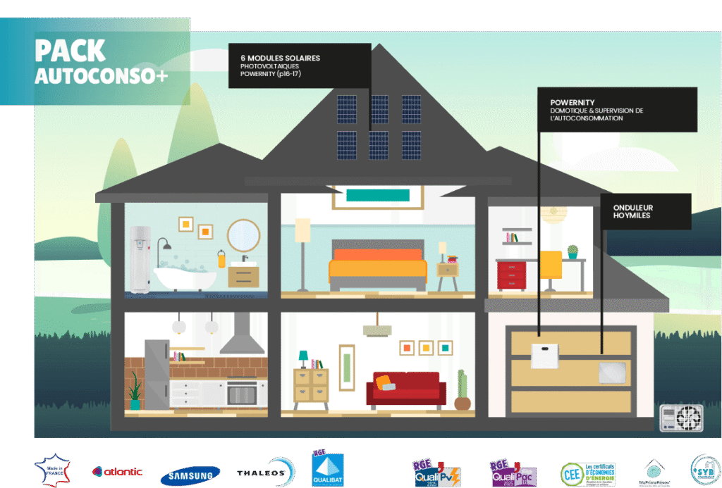 Ce pack met l’accent sur le solaire photovoltaïque et la gestion intelligente de l’énergie pour réduire votre dépendance au réseau et alléger vos factures.